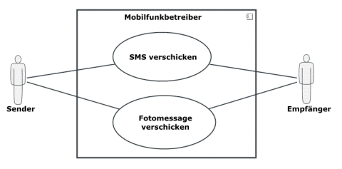 Ein Anwendungsfalldiagramm zeigt die Beziehungen zwischen Akteuren und einer von einer Systembegrenzung eingeschlossenen Menge von Anwendungsfällen (use cases). Je nach Interpretation des Systembegriffs eignet es sich sowohl für die Geschäftsprozess- als auch für die Softwaremodellierung: