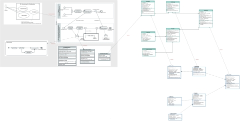 Das Whiteboard-Diagramm ist ein Übersichtsdiagramm und dient der Visualisierung der Zusammenhänge von Elementen in unterschiedlichen Diagrammen und somit von Elementen verschiedener Notationen. Tabellen fügen Sie über Diagramme, in denen diese Tabellen vorkommen, ins Whiteboard-Diagramm ein.