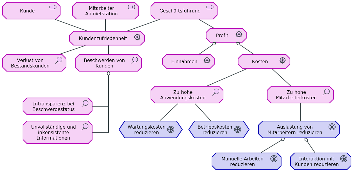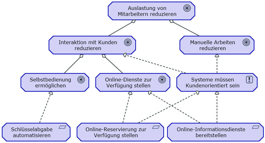 Goal Realization ViewDie Zielerreichungsübersicht beschreibt die in der Architekturvision gefundenen Ziele detaillierter. Zudem werden die für die Erfüllung eines Ziels |