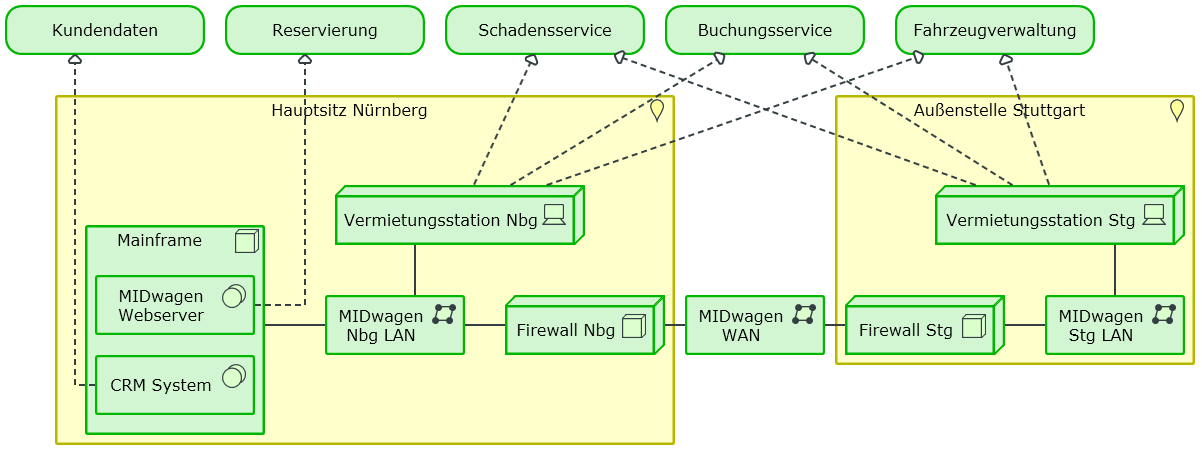 Infrastructure Usage ViewDie Infrastrukturübersicht zeigt Soft- und Hardware-Elemente des Unternehmens, welche die Anwendungen unterstützen. |
