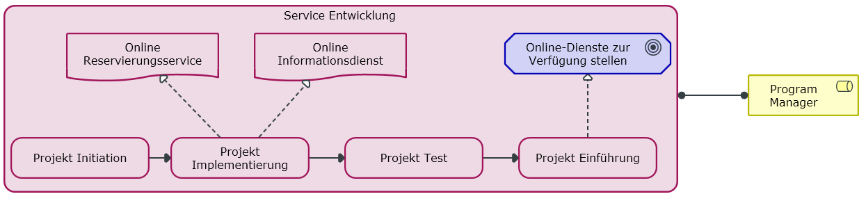 ArchiMate DiagrammArchiMate Diagramme zeigen die Beziehungen zwischen den Architekturelementen eines Unternehmens und stellen alle wesentlichen Notationselemente zur Verfügung. |