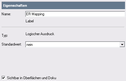 Bei deaktiviertem Auswahlfeld Sichtbar in Oberflächen und Doku wird das Label im Navigationsbereich von Diagrammen und in der Dokumentation unterdrückt.