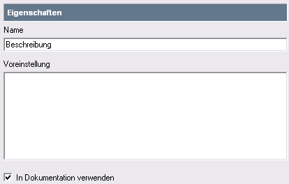 Wenn der Spezifikationstyp standardmäßig in der Dokumentation verwendet werden soll, aktivieren Sie das Auswahlfeld In Dokumentation verwenden.