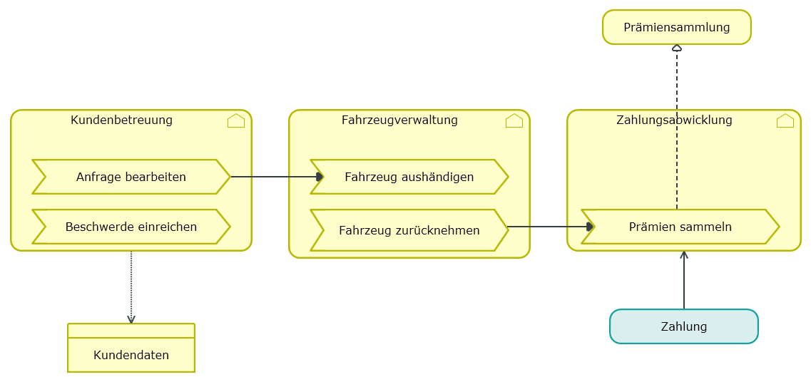 Dazu werden die Relationen zwischen den Geschäftsbereichen, deren Prozessen, Anwendungen, Informationsstrukturen, Infrastrukturen usw. modelliert.