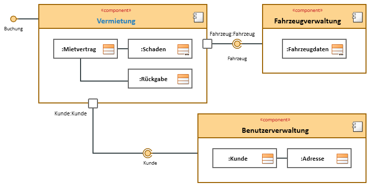 Komponente | Komponenten sind modulare Teile eines Systems, die so strukturiert sind, dass sie in ihrer Umgebung durch eine andere, äquivalente Komponente ersetzt werden könnten. Eine Komponente schottet als Modul ihre innere Struktur gegen außen ab und bietet stattdessen eine Menge von angebotenen und erforderlichen Schnittstellen oder auch Ports. |