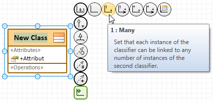 circular icons for all the relationships that are permissible for the diagram element selected