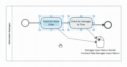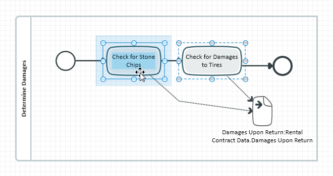 Moving the mouse with the right mouse button pressed affects all elements within the container you started moving in (e.g. a process frame). The container shows the primary selection and all elements in this container that are to the right or below the mouse pointer (depending on the direction you are moving in) make up the secondary selection.