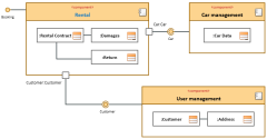 Whiteboard DiagramsWhiteboard diagrams enable visualization of relationships between model elements which would otherwise have to be visualized in different diagram types. |