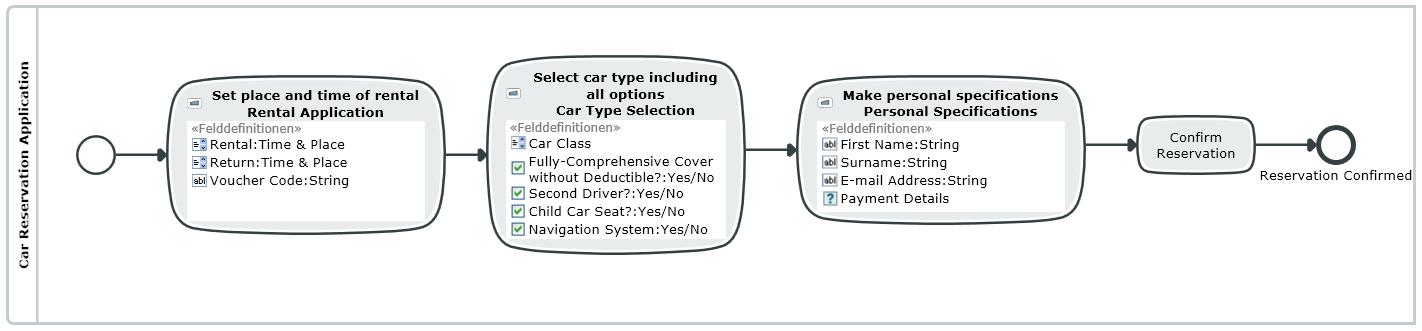 The diagram editor for BPMN diagrams is used for modeling business processes. The diagram editor for mask flow diagrams is used for modeling mask flows in notation similar to BPMN.