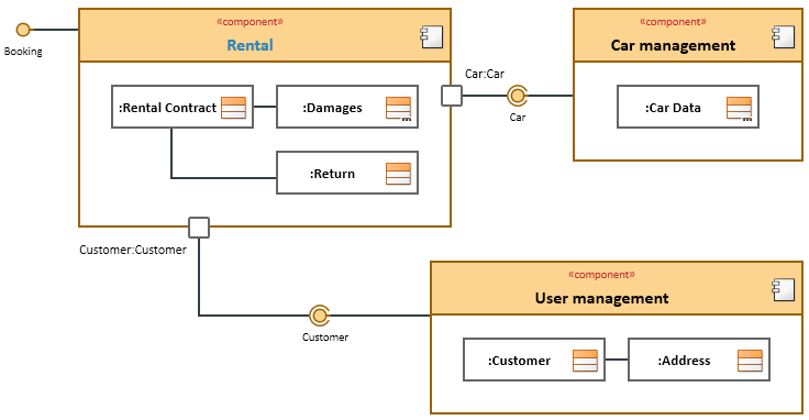 You can use composite structure diagrams to model the inner structure and interaction relationships of classifiers.