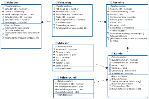 You can use the database diagram to model a submodel of the database schema. Database tables are shown as nodes and foreign keys as edges.