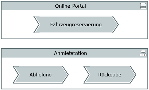 The process map is not methodically linked with BPMN processes. IT systems likewise do not need to be modeled as BPMN elements. The process map does not limit you as a modeler. You can model relationships without methodical restrictions to define defaults and define a framework for other modeling, whether it be in BPMN or in other notations.
