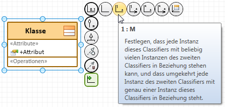 Normalerweise erstellen Sie eine Beziehung zwischen Modellelementen in einem Diagramm und nutzen dazu das sogenannte Karussell.