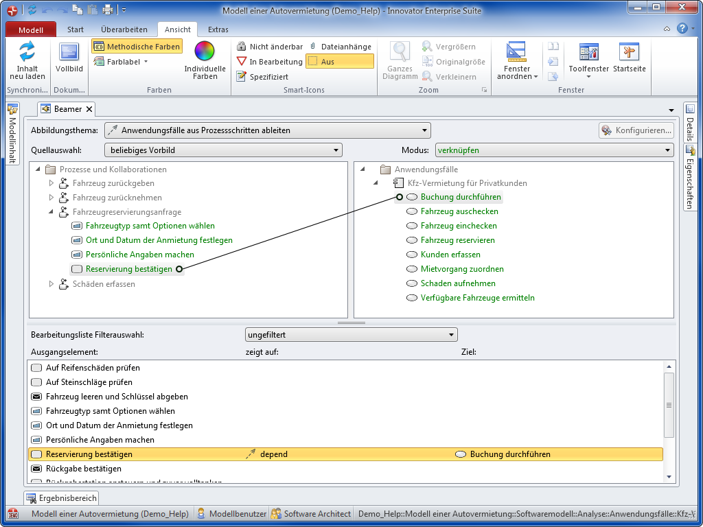 Das Toolfenster Beamer unterstützt die flexible und transparente Abbildung von Elementen und kann vielfältig konfiguriert werden.