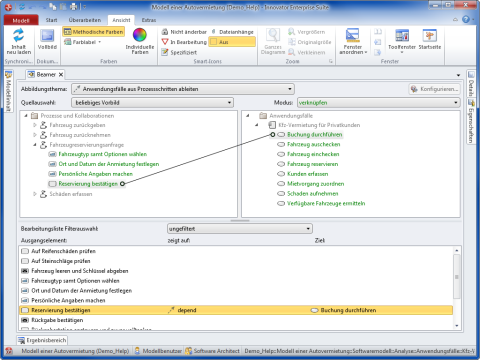 Bei Selektion von Abbildungen (Mehrfachselektion möglich) werden im Abbildungsbereich die zugehörigen Kanten eingeblendet.