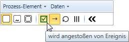 In der oberen Zeile der Minisymbolleiste wählen Sie das Symbol für das Prozess-Element oder die Daten, die Sie dem selektierten Teilprozess direkt zuordnen wollen.
