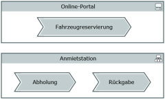 Process MapProcess maps can be used for displaying and developing processes, as well as modeling the coordinated interaction of two or more processes using the participants of a collaboration. Interactions between participants are also modeled. |