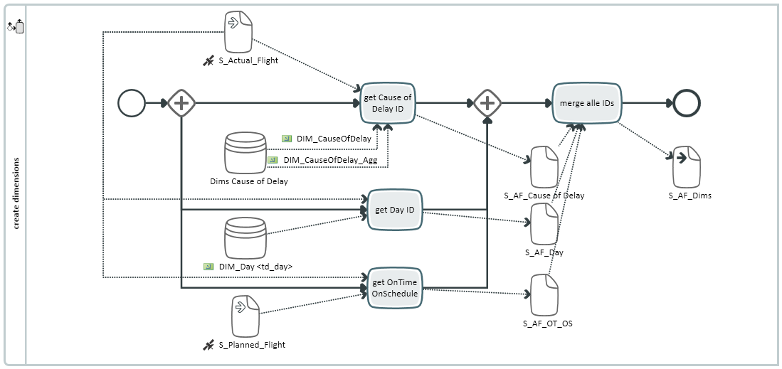 Process DiagramsIn the Business Intelligence context, process diagrams display the processes for acquiring and processing data from the operational systems to the data warehouse. |
