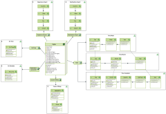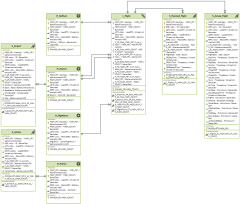 Database DiagramsDatabase diagrams show a submodel of the database schema. Database tables are shown as nodes and foreign keys as edges. Innovator uses the IDEF1X notation. Database views can also be displayed as nodes and their From clauses as edges. |