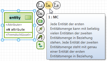 The entity and the relationship for the entity first created are created; the entity is initially assigned a default name. You can immediately change this.
